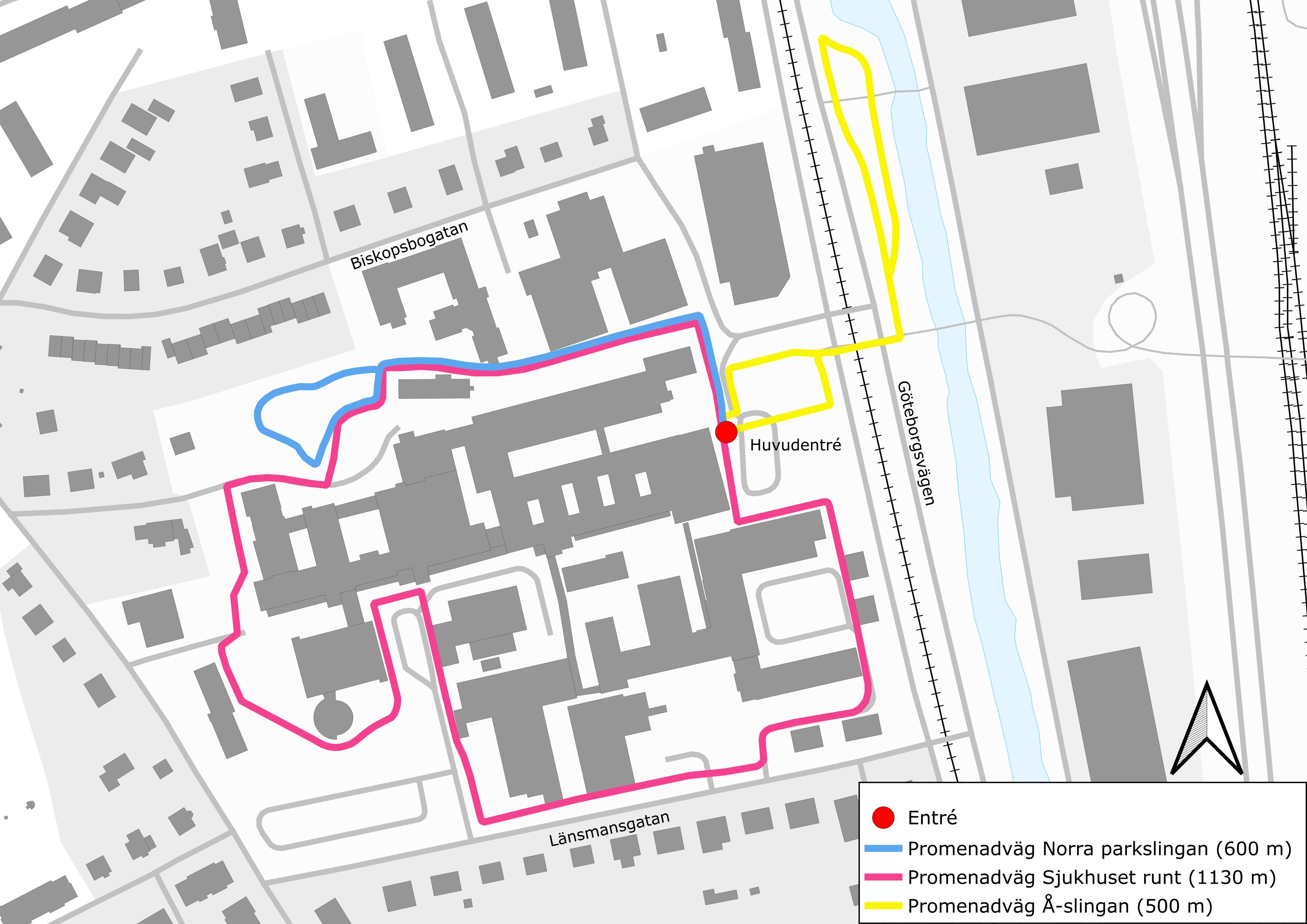 Karta-promenadslingor-Mölndals sjukhus